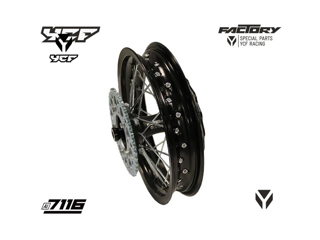 Kompletní zadní zesílené kolo 1.85x12",CNC náboj, pevnostní hliníkový ráfek 7116 pitbike YCF